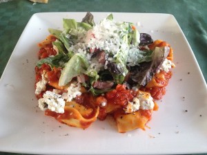 verse ravioli met salade en geitenkaas