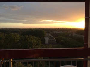 Heerlijk genoten van de sauna vandaag! We waren er al lekker vroeg en zijn om een uurtje of 5 weer weg gegaan. We besloten om langs te gaan bij Carin en Radj, waar John en Sil ook bleken te zijn. Lekker op het terrasje gezeten met een fantastisch uitzicht over Den Haag. Superlekker gegeten ook trouwens! Varkenshaas, gebakken aardappeltjes, snijbonen en sla.