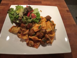 Dinsdag: tussen de middag kaasfondue, ‘s-avonds versgemaakte pasta met rode saus en gehaktballetjes. Natuurlijk met een lekkere salade!